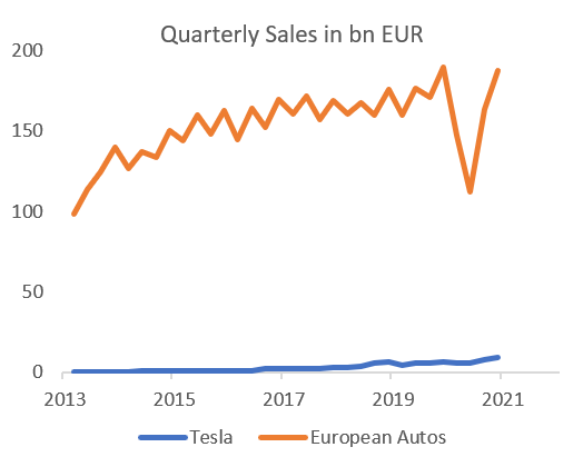 The question surrounding Tesla remains the same: does it make sense that this manufacturer is valued two times the whole European automotive sector which includes the world’s largest manufacturers (Volkswagen, Daimler, BMW, Stellantis and Renault)?