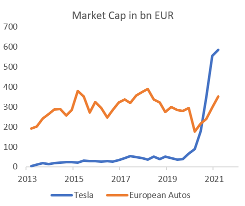 The question surrounding Tesla remains the same: does it make sense that this manufacturer is valued two times the whole European automotive sector which includes the world’s largest manufacturers (Volkswagen, Daimler, BMW, Stellantis and Renault)?
